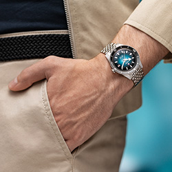 Первая модель с светло-голубым циферблатом и керамическим безелем в тон передаёт атмосферу тёплого летнего дня. Вторая - с чёрно-бирюзовым оформлением, выглядит более динамично, отражая энергию глубоководных приключений.