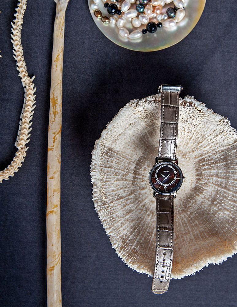 Теперь благодаря сочетанию двух самых прочных материалов, используемых за всю историю часового производства — бриллиантов полной огранки и высокотехнологичных материалов — компания Rado добилась еще более потрясающего эффекта. А за счет перламутра и кожаного ремешка эти часы смотрятся женственно и элегантно.