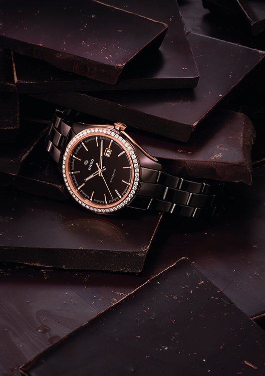 В марте этого года на ежегодной международной выставке часов и ювелирных украшений в Базеле («The Baselworld Watch and Jewellery Show») швейцарская часовая компания «Rado» представила пополнение своей коллекции «HyperChrome» сразу тремя новинками в корпусах из высокотехнологичной керамики оригинального шоколадного цвета.