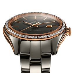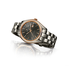 Более того, несмотря на то, что изменение цвета происходит только на поверхности изделия, его цвет со временем не меняется и не теряет блеска. А благодаря тому, что процесс обработки не модифицирует внутреннюю структуру материала, керамика сохраняет высокую устойчивость к царапинам и свою уникальную способность моментальной адаптации к температуре человеческого тела, что, безусловно, создаёт удивительный комфорт при ношении часов на запястье.