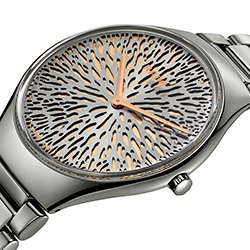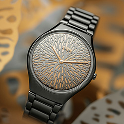 В последней серии часов этого сотрудничества изысканные природные мотивы трех совершенно разных растений воплощены в оригинальном дизайне циферблата. Каждый из них был подобран для индивидуальных часов, чтобы соответствовать настроению и оттенку их моноблочного высокотехнологичного керамического корпуса True Thinline черного, белого или плазменно-серого цвета. Выбранные растения — гавайский Лулу Лело, чилийская араукария и йеменское кровавое дерево Драаон, которые находятся в списке исчезающих видов. Эти растения привносят чувственность и визуальный ритм в индивидуальный дизайн.