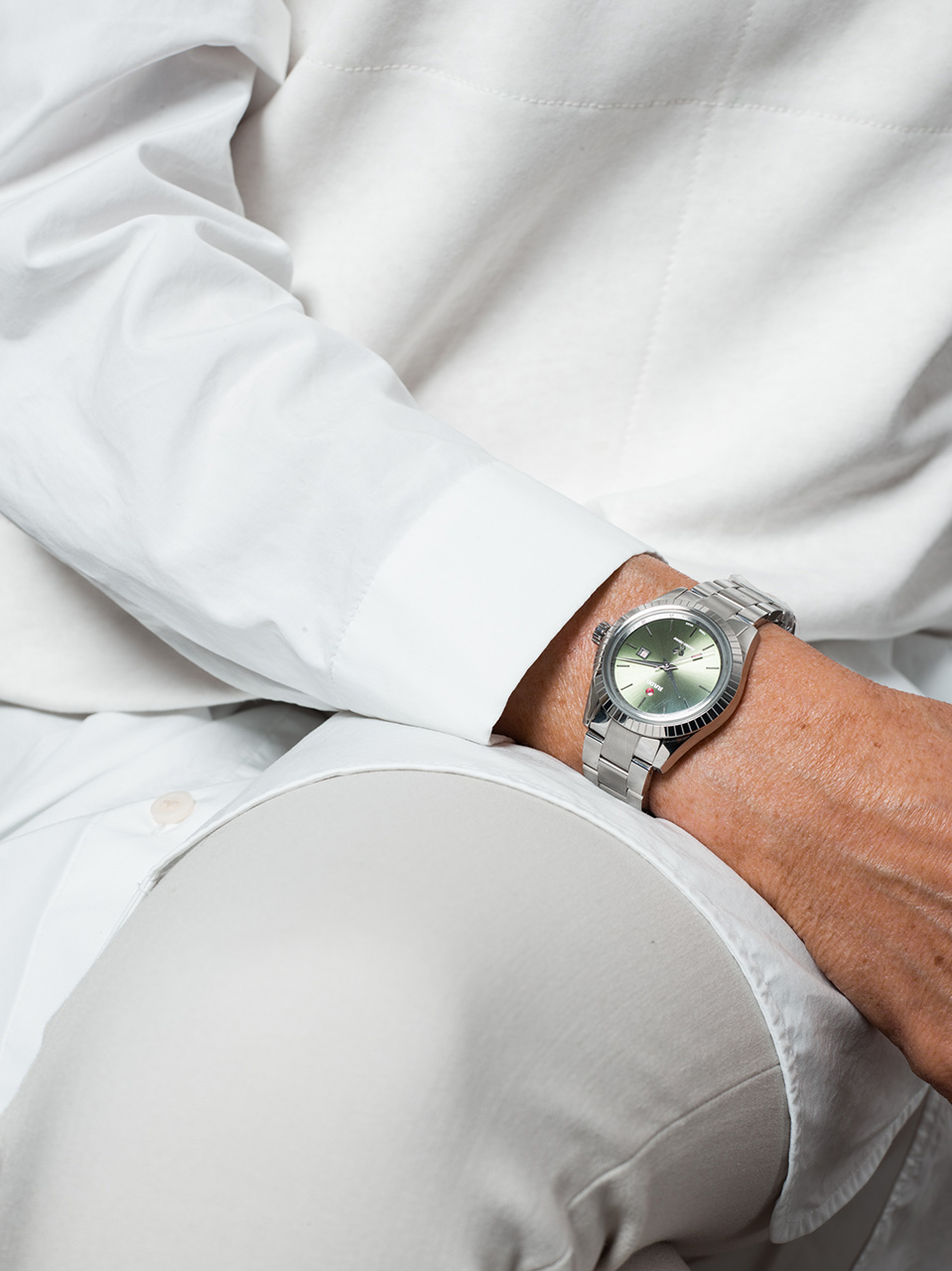 Модели диаметром 42 мм представлены с темно-серым, синим, зеленым и серебристым циферблатом и могут быть оснащены браслетом на ваш выбор: кожаным ремешком, трехзвенным браслетом или браслетом из нержавеющей стали с узором «рисовое зерно». Современные технологии в сфере часового производства позволяют производить замену ремешков без использования специальных инструментов. Эти массивные модели часов оснащены швейцарским автоматическим часовым механизмом ETA C07, который обеспечивает увеличенный запас хода до 80 часов.