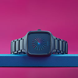 Индийский дуэт обратился к концепции социального дизайна, чтобы вместе с экспертом в материалах создать часы с уникальным отображением времени, которые показывали бы не только местное время владельца часов, но также время в других часовых поясах мира. Эти часовые пояса обозначены при помощи 37 стрелок, окрашенных в цвета, плавно перетекающие из одного в другой — от синего до розового. Это создает эффект сказочного фейерверка в центре циферблата. Два отдельных, но заметных индикатора в виде точек SuperLuminova указывают на местное время.