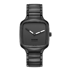 Уникальный корпус из высокотехнологичной керамики в часах True Square обеспечивает комфортное положение на запястье, а инновационная сверхтонкая конструкция корпуса-моноблок составляет всего 9,6 мм в высоту. Задняя часть корпуса из матового титана черного цвета с покрытием PVD и браслет из матовой высокотехнологичной керамики черного цвета позволили достичь еще меньшего веса часов.