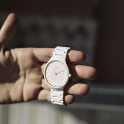 • Заводная головка из полированной высокотехнологичной керамики белого цвета.