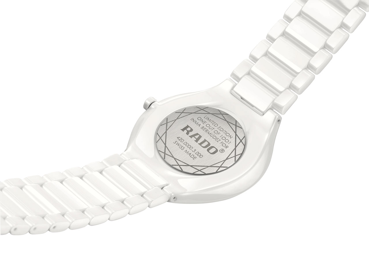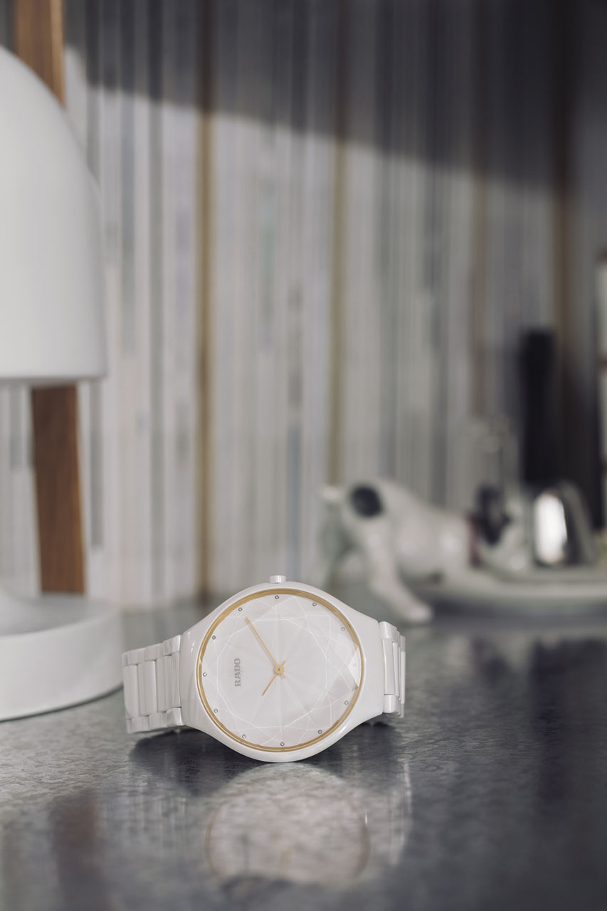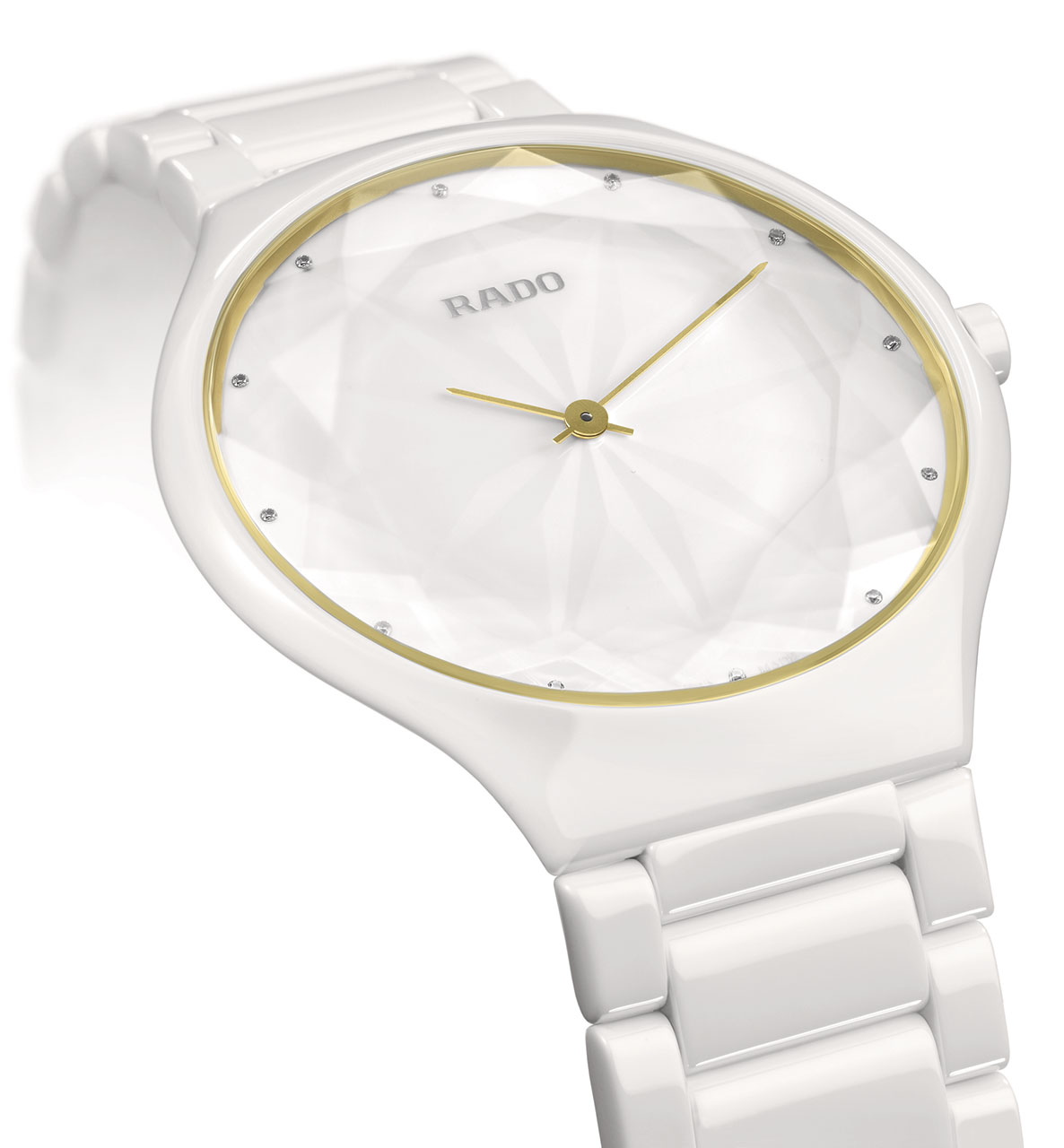 Часы True Thinline Gem, выполненные из белоснежной высокотехнологичной керамики, сапфирового стекла со специальной огранкой и украшенные бриллиантовыми делениями, выпущены лимитированной серией в 1001 экземпляр с особой гравировкой на задней части корпуса. Это новая версия часов в коллекции True Thinline, созданная с независимым дизайнером и Rado — компанией, обладающей множеством международных наград в области дизайна.