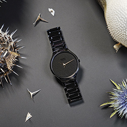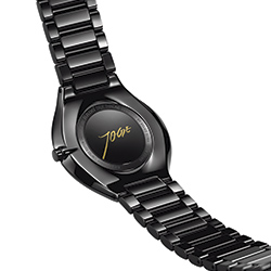 Часы True Thinline Toge из полированной высокотехнологичной керамики черного цвета выпущены лимитированной серией в 1001 экземпляр с особой гравировкой на задней части корпуса — надписью «Toge», выполненной рукой Аяко.