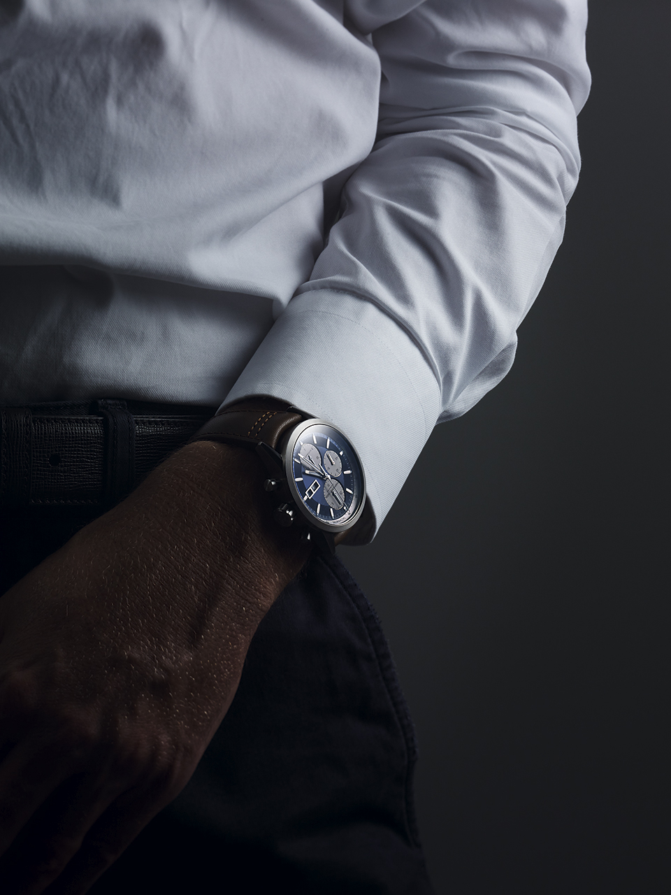 ЦИФЕРБЛАТ: синий с сатинированием, белыми окошками хронографа и серебристыми индексами с покрытием Super-Luminova®.