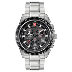 9. Swiss Military Hanowa Crusader Chrono 6-5225.04.007: корпус из нержавеющей стали 316L, безель с ионным покрытием чёрного цвета и тахиметрической шкалой, чёрно-серый циферблат с часовыми индексами серого цвета, браслет из нержавеющей стали.