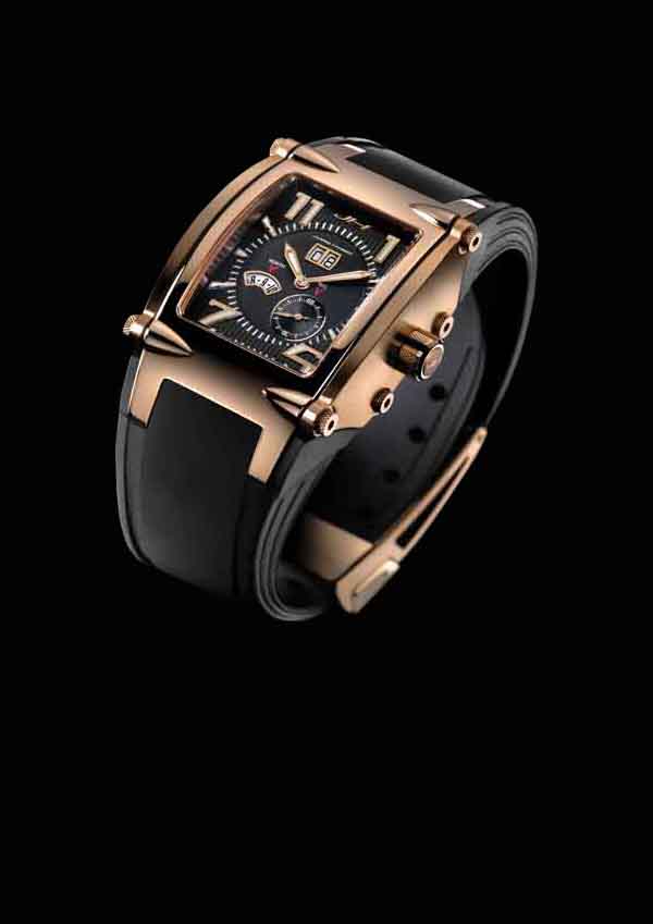 Наши часы узнают по форме корпуса Bridge: верхняя часть часов изогнута сильнее, чем нижняя, а перегородки на боковой стороне корпуса очень напоминают опоры моста. На циферблате Hysek выделены не традиционные цифры, а 1,5,7 и 11.