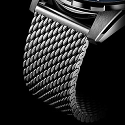 Модель из лимитированной коллекции Diver Blue Shark Limited Edition (выпущена в количестве 300 экземпляров) выполнена из нержавеющей стали с PVD-покрытием. Синий циферблат гармонирует с цветом безеля. Ремешок декорирован ярко-оранжевой строчкой. На задней крышке нанесена гравировка синей акулы – по аналогии с белой акулой, изображенной на модели Diver Great White диаметром 44мм.