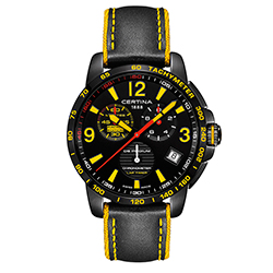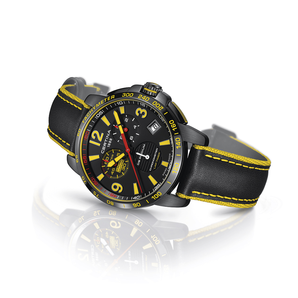 Хронограф DS Podium Lap Timer Racing Edition явился первой моделью в новой коллекции CERTINA, посвященной многолетнему партнерству швейцарского бренда с мировой индустрией автоспорта. Часы представлены в трех вариантах: